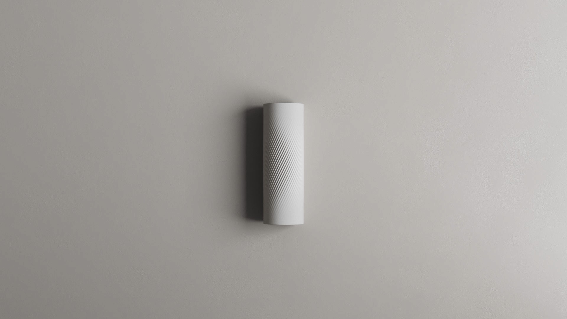 Its semi-cylindrical surface features a relief pattern that gradually evolves: subtly suggested at the edges and